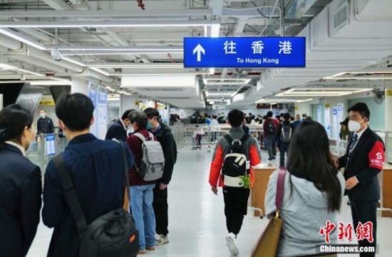 資料圖:圖為前往香港的旅客有序出境。圖/ 中新社記者 陳文