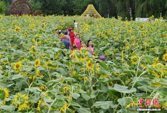 8月25日,長春市的長春公園內(nèi),5000平方米的向日葵盛開,吸引了大批游客前來觀賞。當(dāng)天,“秋之韻·葵心向陽”秋季系列活動拉開帷幕。中新社記者 張瑤 攝