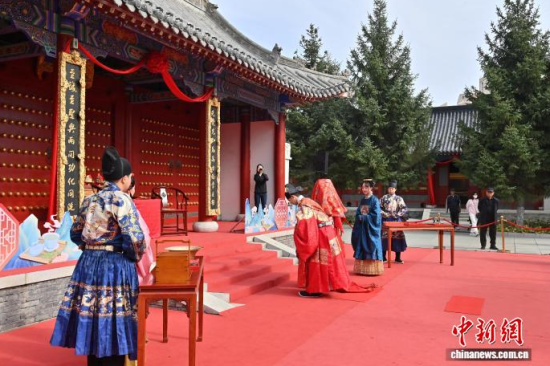 10月7日,吉林長(zhǎng)春文廟舉行了一場(chǎng)明制漢婚沉浸式展演。漢服愛好者依次呈現(xiàn)奠雁、同牢、合巹等傳統(tǒng)禮儀,生動(dòng)還原明代婚俗,F(xiàn)場(chǎng)通過流程講解與道具展示,解讀禮儀背后古人對(duì)婚姻與美好生活的寄愿。中新社記者 張瑤 攝