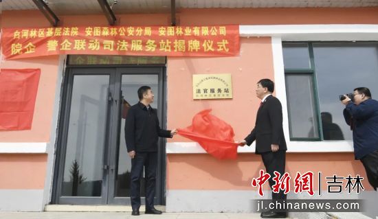 會后,在島安林場室外舉行了司法服務(wù)站揭牌儀式。為法官服務(wù)站、警長服務(wù)站揭牌,院企、警企聯(lián)動機(jī)制啟動儀式勝利閉幕。院警企三方已通過協(xié)商達(dá)成共識,并在當(dāng)?shù)?個林場設(shè)立司法服務(wù)站,為“接警到場”“送法到戶”,提供強(qiáng)有力的保障。