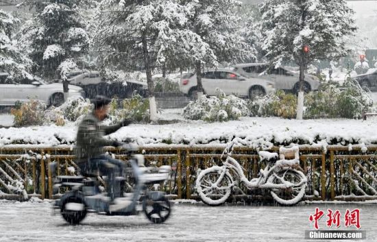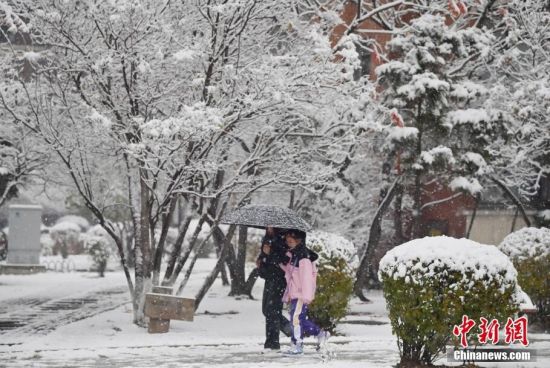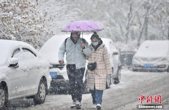 11月1日,吉林長春降下今年入秋以來的第一場雪,整座城市披上銀裝。中新社記者 張瑤 攝