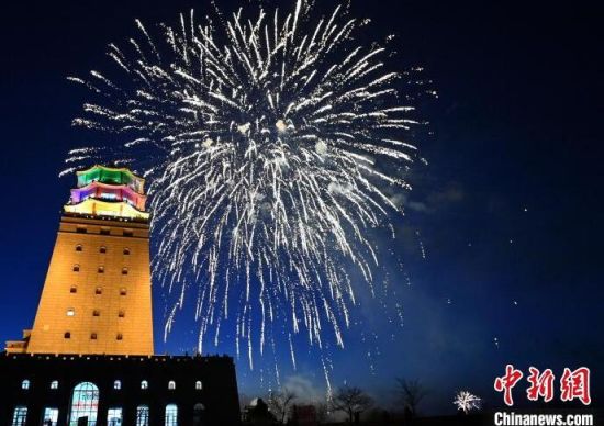 中新網吉林琿春1月1日電 (記者 郭佳)2024年第一天,中外6000多名游客清早登上琿春龍虎閣,觀看中俄朝三國在交界地帶舉行的煙花表演,人們在璀璨的煙花里許下美好新年愿望。