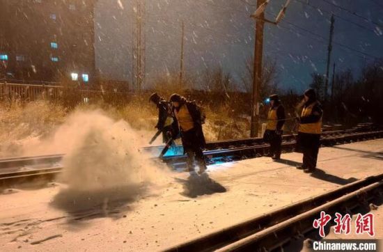 長春鐵路部門連夜清雪。中國鐵路沈陽局集團有限公司長春站供圖