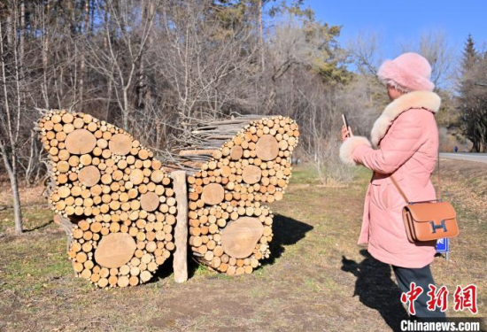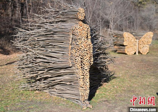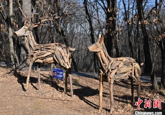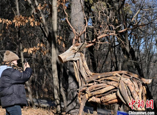 11月18日,在位于吉林長春的凈月潭國家級(jí)風(fēng)景名勝區(qū)內(nèi),游客在參觀雕塑。凈月潭國家級(jí)風(fēng)景名勝區(qū)的工作人員利用一個(gè)月的時(shí)間,用掉落的枯枝制作成多處雕塑,成為冬日一景。中新社記者 張瑤 攝