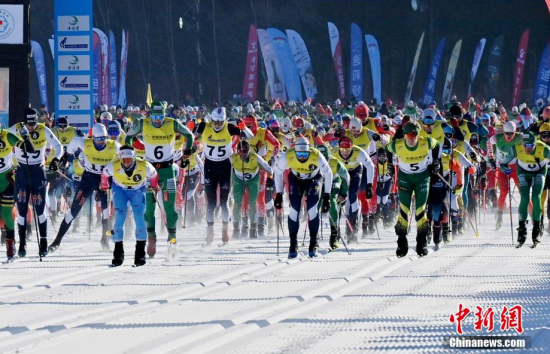 1月4日,第23屆中國(guó)長(zhǎng)春凈月潭瓦薩國(guó)際滑雪節(jié)在長(zhǎng)春開幕,來(lái)自33個(gè)國(guó)家和地區(qū)的2000余名專業(yè)運(yùn)動(dòng)員和滑雪愛好者當(dāng)天完成了5個(gè)組別的越野滑雪賽事,在茫茫林海和皚皚白雪中盡享冰雪運(yùn)動(dòng)樂趣。(完)
