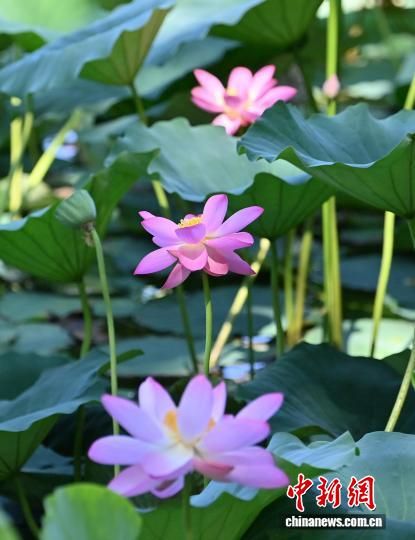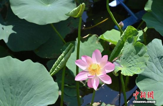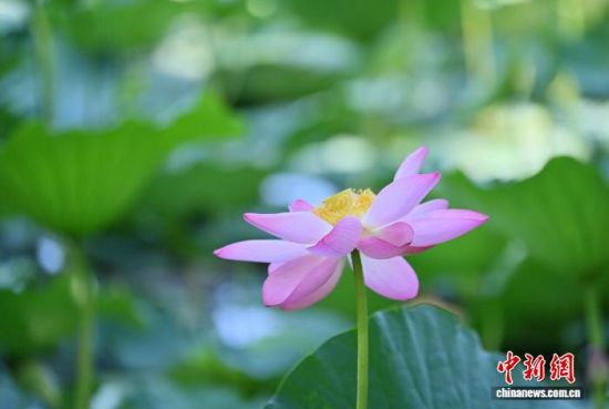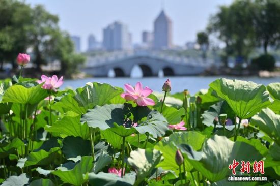 7月22日,吉林省長春市南湖公園的4公頃荷花綻放,吸引市民與游客前來觀賞。 中新社記者 張瑤 攝