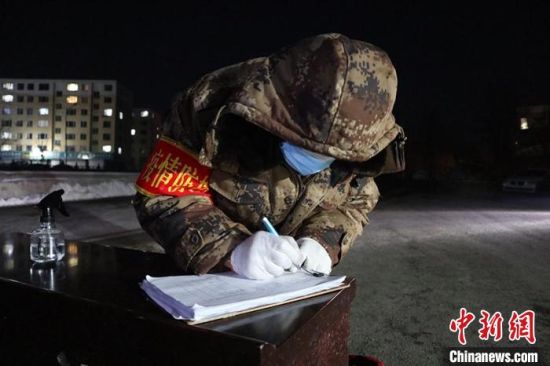 中新網(wǎng)通化1月28日電 (蒼雁 孫博妍)入夜的通化月光皎白,李曉東望著對面窗里亮起的燈,安心不少!澳鞘俏壹,就在卡點(diǎn)對面!痹诜酪咭痪駐守半個月,李曉東很惦記家里人。