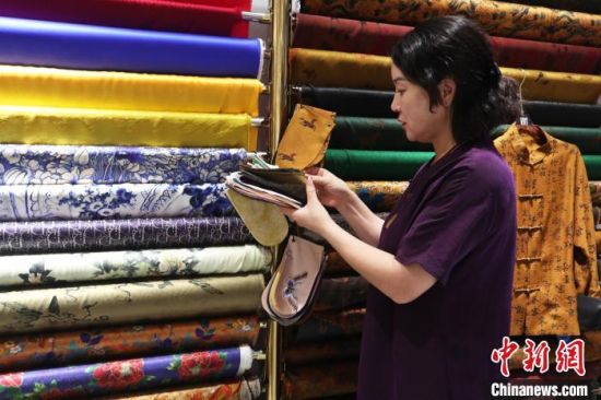 8月5日,吉林市旗袍館,朱文俊在為客戶挑選布料!≈行律缬浾 蒼雁 攝
