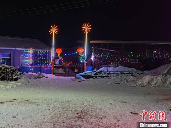 為慶祝春節(jié),大河森村玉米種植大戶們給庭院做起亮化工程。 曲文星 攝