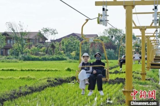 中新網(wǎng)延邊7月11日電 (李彥國(guó))游人們的歡笑聲從一臺(tái)明黃色的低空纜車中溢出,為稻浪翻涌的田園畫卷增添了躍動(dòng)的“音符”。